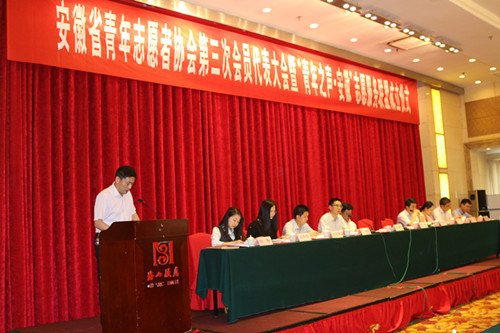6月13日下午14时,安徽省青年志愿者协会第三次会员代表大会暨“青年之声.安徽”志愿服务联盟成立仪式在合肥隆重举行。团安徽省委副书记李国阳、安徽省文明办副主任刘涛、团安徽省委宣传部部长刘存磊、省文明办创建处副调研员吴晓辉等领导以及全省青年志愿者代表出席了此次会议。