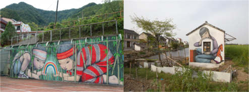 柒先生在台湾及上海枫泾创作的公益墙绘